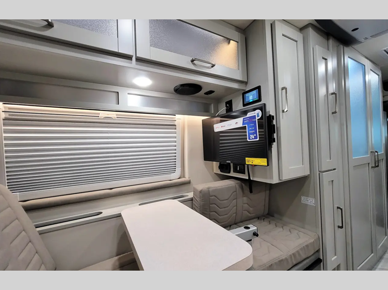 Each model is constructed with Rockwool R-15 insulation, the best of any ProMaster, plus imported European dual pane acrylic windows and marine-grade PVC vinyl. The dual 110W solar panels will allow you to go off-grid when the journey calls for it, but you can stay connected with the King Olympus Wi-Fi router, digital antenna, and cell booster prep. The Nova features a new 30 Amp Smart Plug, a 24" LED Smart TV, plus a Truma Aventa 13.5K BTU A/C that includes three speeds, a dehumidifier, and night mode. And we haven't even touched on the interior comforts, like the solid hardwood cabinetry, the fiberglass shower, and the residential high rise faucet and sink.