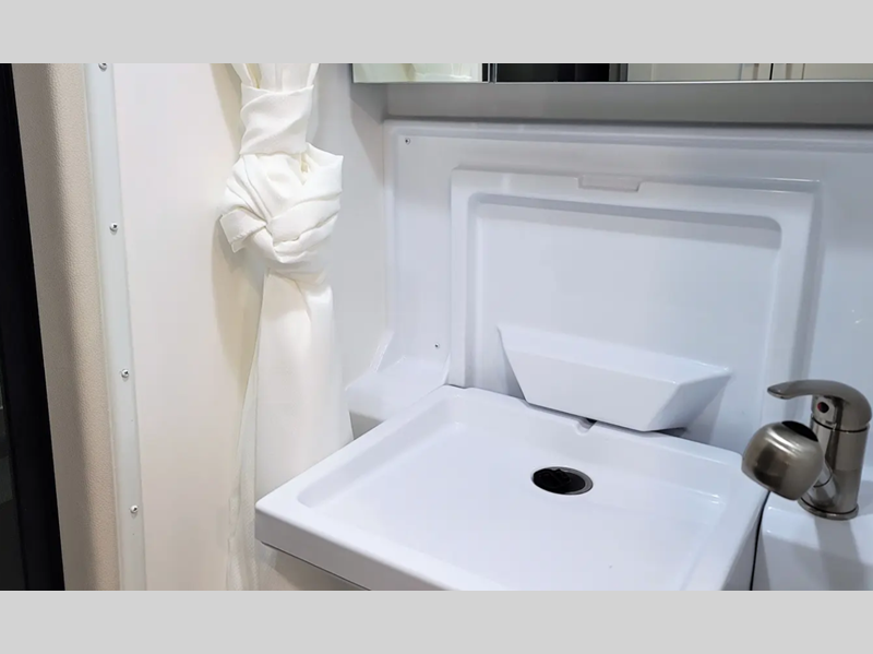 Sleeps 2 Length 20 ft 11 in Ext Width 7 ft 2 in Ext Height 9 ft 4 in Interior Color Cashmere, Fog Exterior Color Silver, White, Ceramic Grey GVWR 9350 lbs Fresh Water Capacity 27 gals Grey Water Capacity 20 gals Black Water Capacity 19 gals Fuel Type Gas Engine 3.6L V6 24 Valve Chassis Ram Pro Master 3500 Horsepower 280 hp Fuel Capacity 24 gals Wheelbase 159 in Available Beds Two Twins Convert to Larger Bed Refrigerator Type Nova Kool Refrigerator Size 7.3 cu ft Convection Cooking Yes Cooktop Burners 1 Number of Awnings 1 Axle Weight Front 4629 lbs Axle Weight Rear 5291 lbs LP Tank Capacity 42 lbs. Water Heater Type Truma Combi Eco Plus AC BTU 13500 btu TV Info LR 24" LED Smart TV Awning Info 13' 1" Gross Combined Weight 11500 lbs Shower Type Wet/Bath Shower Solar Wattage 220 watts Similar Floorplans